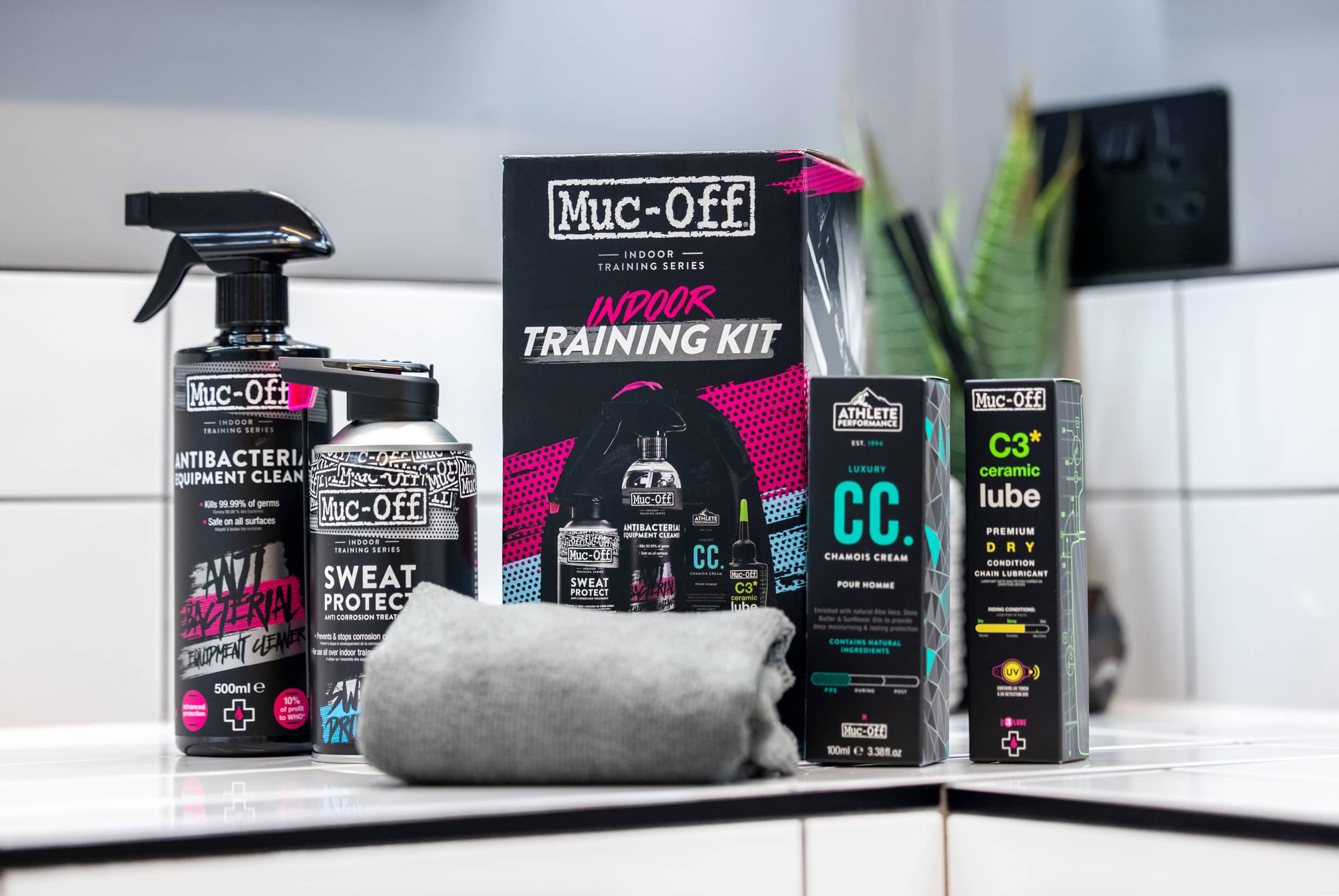 The Muc-Off indoor training care kit contains everything you need to protect, clean and maintain your indoor bike. The care pack contains: Sweat Protect 300ml